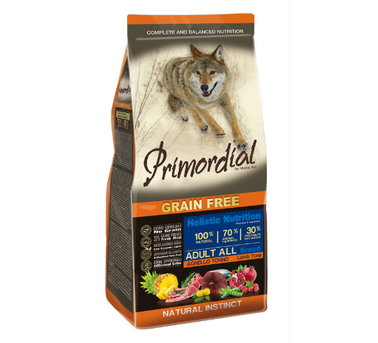 פרימורדיאל ללא דגנים טונה וכבש הוא מזון מלא, נטול דגנים, עשיר בחלבונים ומכיל את הרכב חומצות האמינו המתאים.
